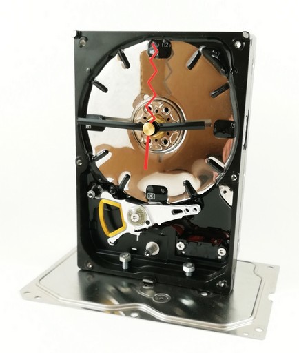 Clock made from an old 3.5″ hard drive.